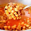Üzerine kaynamış su ve nohutlar eklenerek pişmeye yakın tuz ve pul biber eklenir.