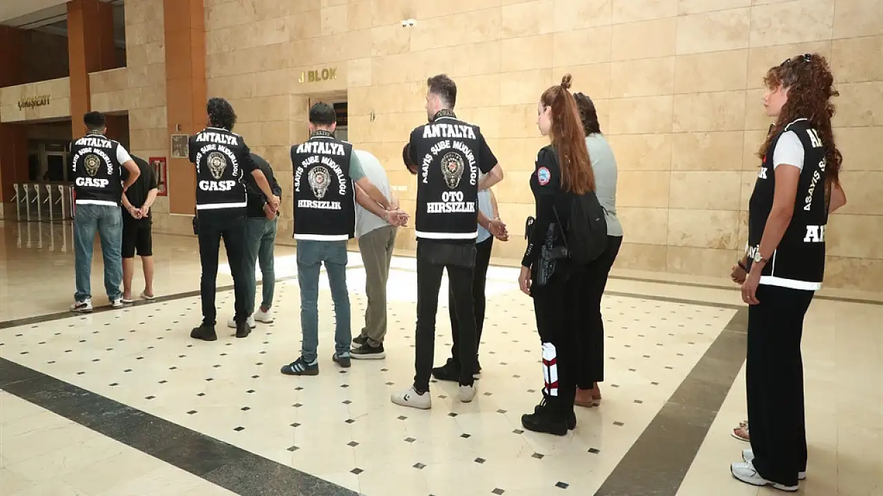 Antalya'da 2 kişiyi bir evde 13 saat alıkoyup, silah tehdidiyle 6 milyon lira hesaplarına geçiren 2'si kadın 6 şüpheli, tutuklandı.