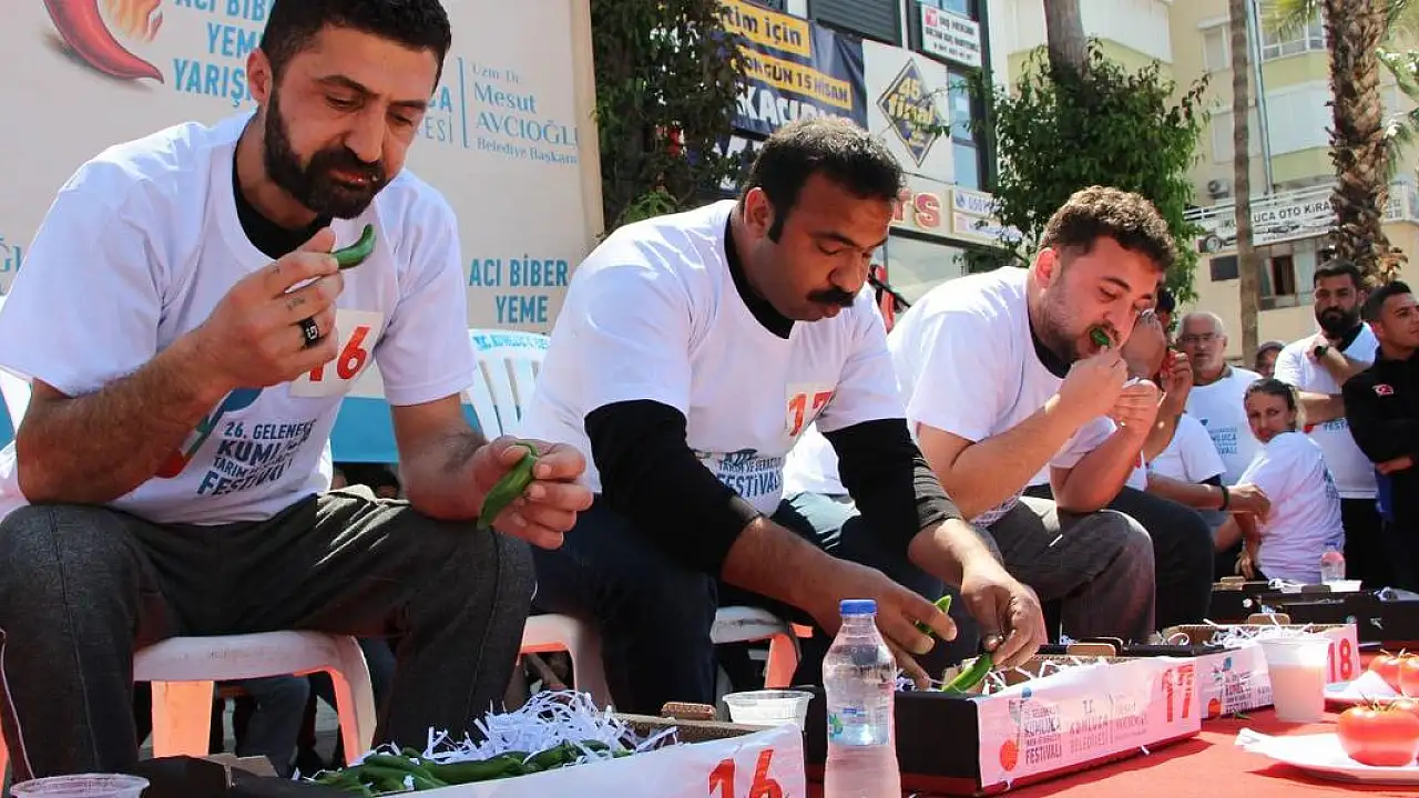 Cumhuriyet Meydanı'nda düzenlenen yarışmaya 30 kişi katıldı. Kaymakam Bahadır Güneş ve Belediye Başkanı Mesut Avcıoğlu ile siyasi parti temsilcileri, daire amirleri, STK temsilcileri, mahalle muhtarları ve çok sayıda kişi yarışmayı izledi. Jüri üyeliğini Tarım ve Orman İlçe Müdürü İsa Akşit, Kumluca Belediye Başkan Yardımcısı Erhan Kökcü ve Kumluca Ziraat Odası Başkanı Hidayet Kökce'nin yaptığı yarışmada katılımcılar karton ambalajın içinde aldıkları biberleri önce jüri üyelerinin nezaretinde tarttı ve yarışma standına geçti. Başlama düdüğüyle birlikte yarışmacılar birinci olmak için ter döktü. Acı biberleri yemekte zorlanan bazı yarışmacılar acıyı hafifletmek için domates yiyip, ayran ve su içti