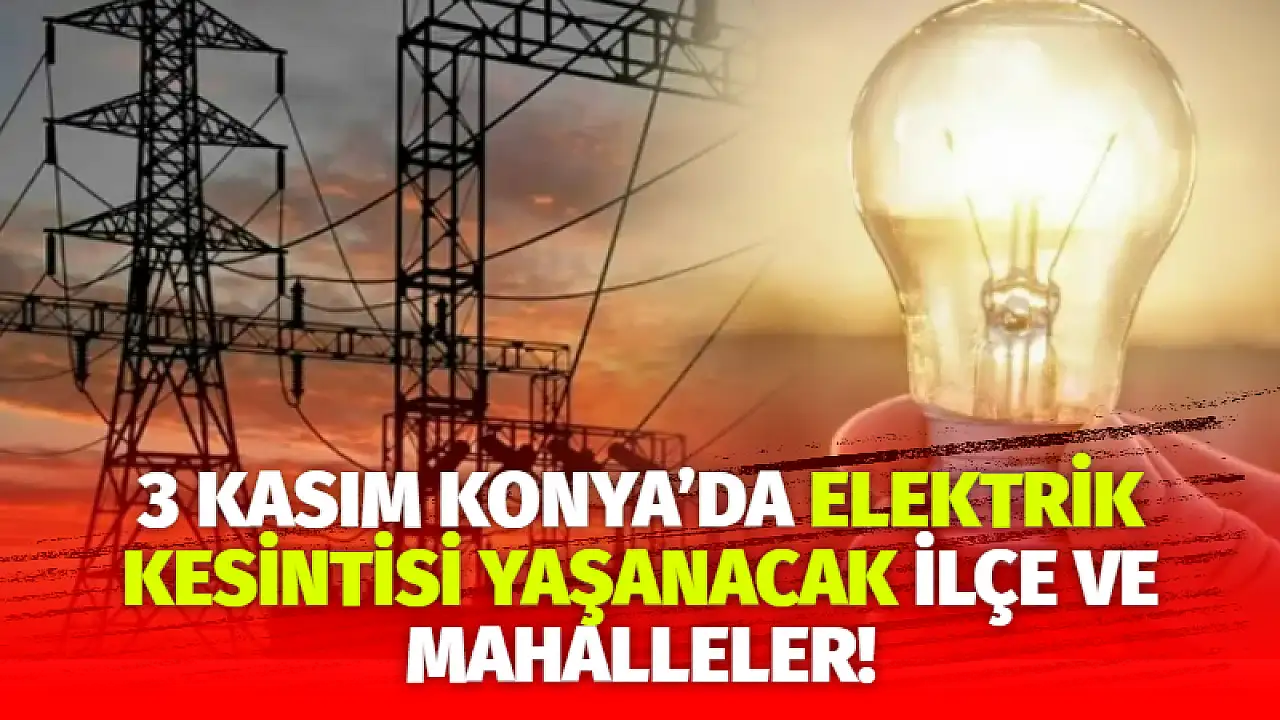 - 3 Kasım Konya'da Elektrik Kesintisi Yaşanacak İlçe ve Mahalleler!