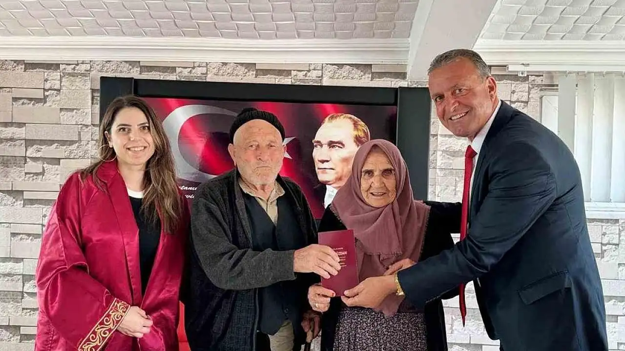 Niğde'de 8 çocuk ve 20 torun sahibi çift, 60 yıl sonra nikah masasına oturdu.