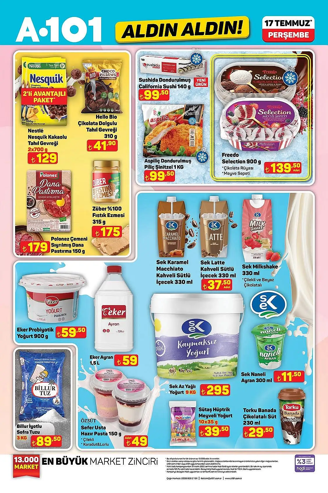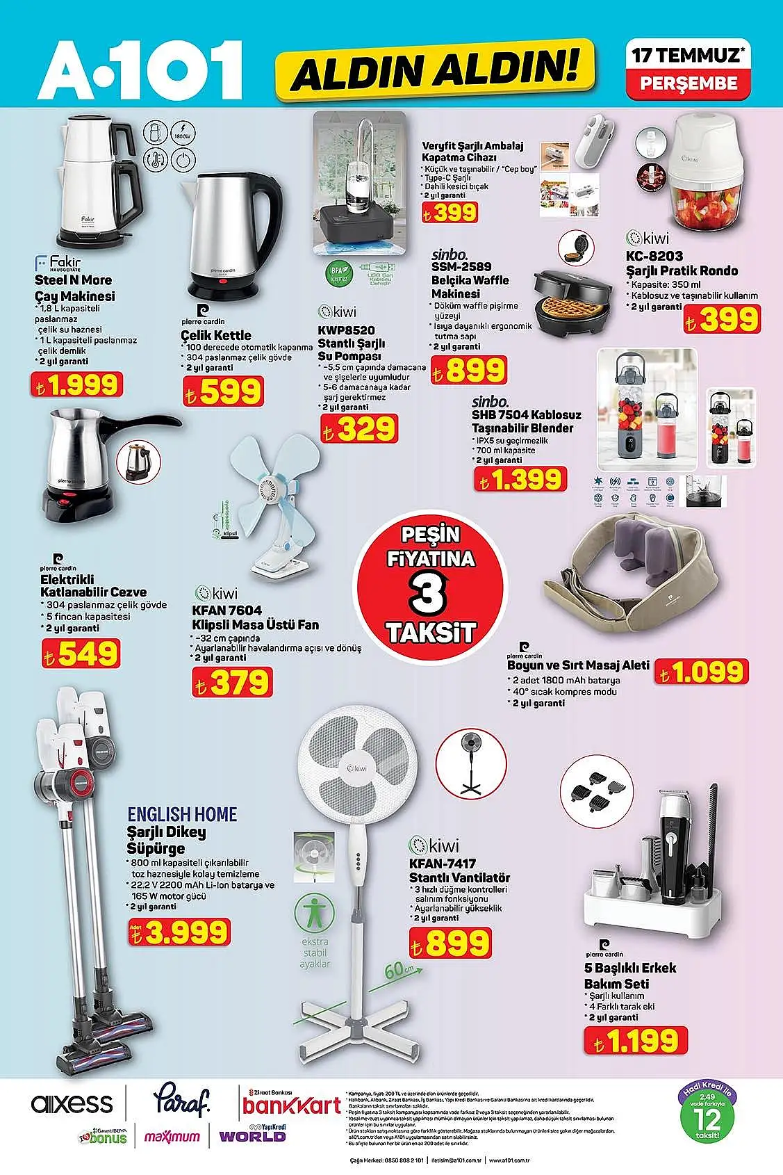 17 Temmuz 2025 A101 aktüel ürünler kataloğu alışveriş severlerden yoğun ilgi görüyor.A101 marketler perşembe günü yaptığı aktüel ve indirimli ürünler ile müşterilerini memnun etmeye devam ediyor.