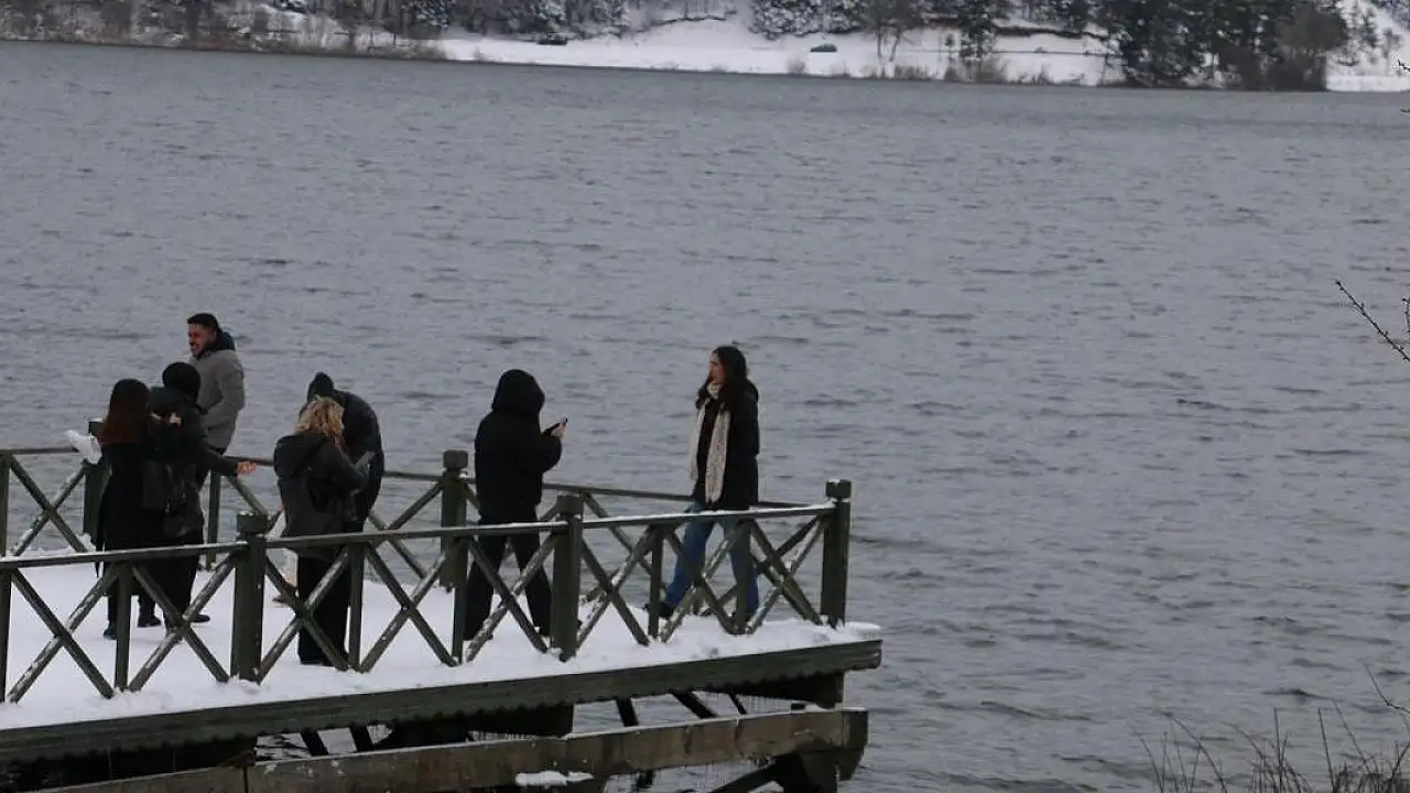 Bolu'nun doğa harikası Abant Gölü Mili Parkı'nda kar yağışı aralıklarla etkili oluyor. Kar kalınlığı yer yer 15 santimetreye kadar ulaşırken, bölgeye gelen tatilciler ve çocuklar karın tadını çıkardı. Abant'a gelen tatilciler gördükleri kar manzarası eşliğinde göl çevresinde yürüyüş de yaptı. Bol bol fotoğraf çektirerek eşsiz manzaranın keyfini süren tatilciler kar topu oynamayı da ihmal etmedi.