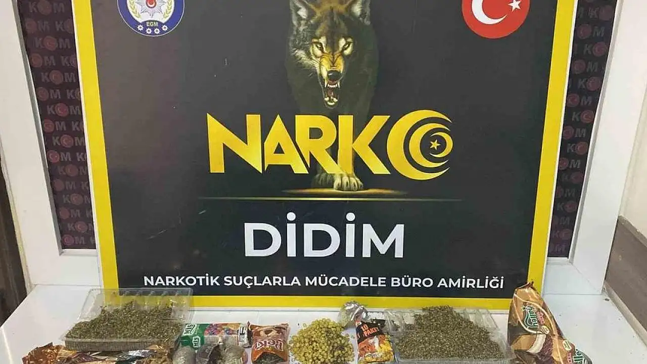Aydın'ın Didim ilçesinde polis ekipleri tarafından yapılan çalışmalar çerçevesinde bisküvi, cips ve meyve suyu paketlerine gizlenmiş uyuşturucu madde ele geçirilirken, olayla ilgili gözaltına alınan 1 şüpheli şahıs tutuklandı.