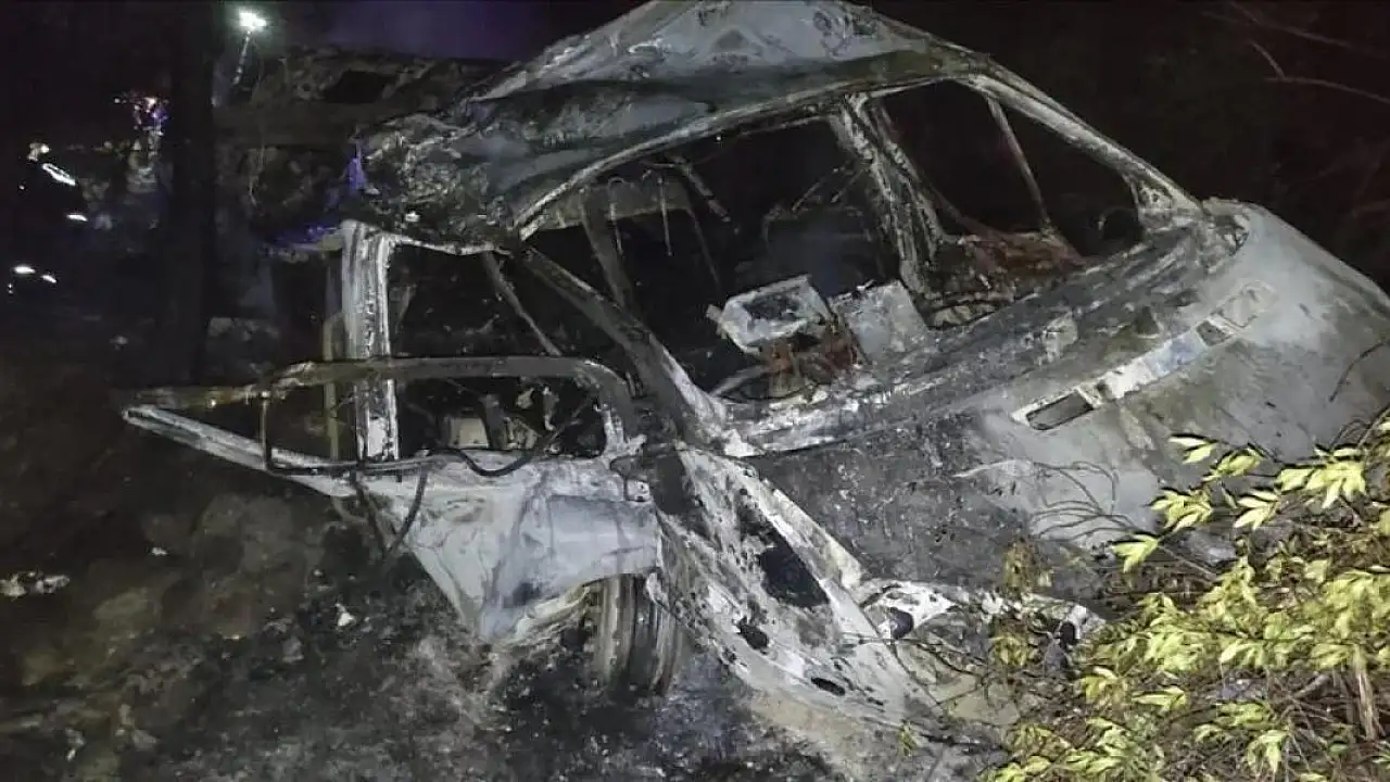 Adana'da uçuruma devrilip yanan minibüsteki 3 kişi öldü, 18 kişi yaralandı