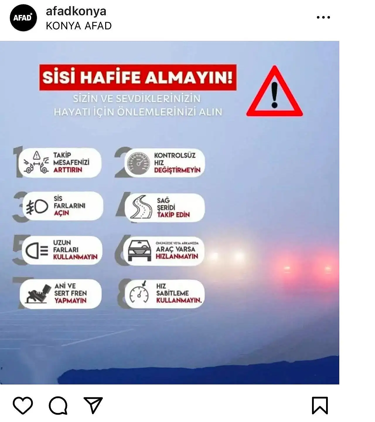 - AFAD Uyardı! Konya'da Yoğun Sise Dikkat!