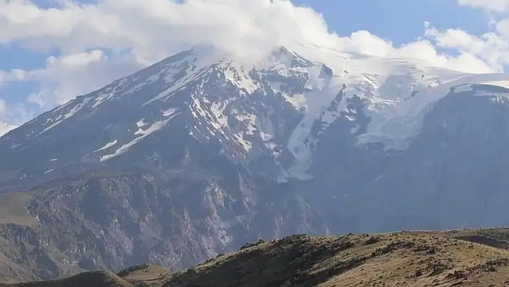 Ağrı Dağı'nın zirvesindeki takke buzulu eriyor