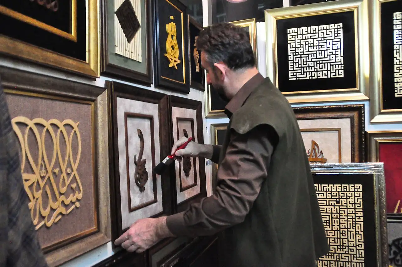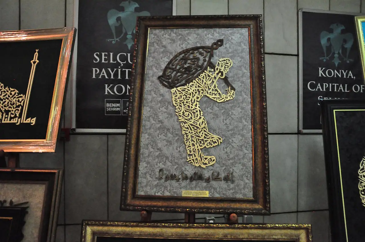 Eserlerin fiyatlarının 750 liradan başlayıp 18 bin liraya kadar çıktığını belirten Civelek, “10-15 gün işçiliğin yoğunluğuna göre süren çalışmalar var. Yuvarlak olan 15 günlük bir çalışma. Ben genelde yazı çalışıyorum. Hüsnü-hat yazıları çalışıyorum, hat yazısı olarak çalışıyorum. 7 senedir burada standımız var. İlk önce müracaatımızı yaptık. Yaptığımız sanatın bir görselini sunduk yetkililere. Bu stant doluydu boşaldı. Stant boşalınca beni çağırdılar bize yer tahsis ettiler. Burası yaz kış senede 52 hafta açık her cumartesi 19:00’da sema gösterisi var ama Konya'nın haberi yok. Önceden bedavaydı, ücretsizdi. Son yıllarda ücretliye çevirdiler.