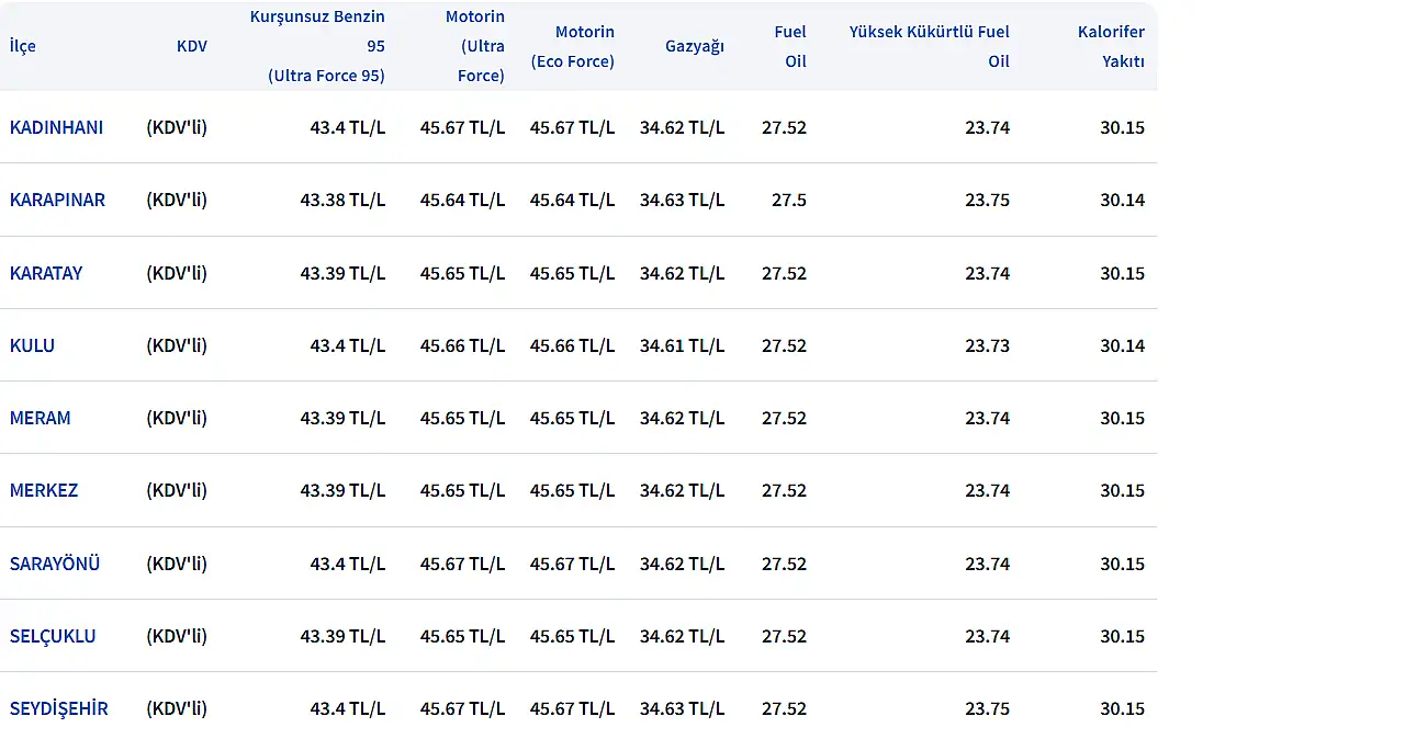 KONYA'DA GÜNCEL AKARYAKIT FİYATLARI