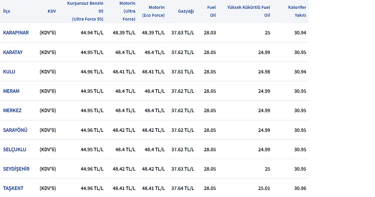 KONYA'DA GÜNCEL AKARYAKIT FİYATLARI