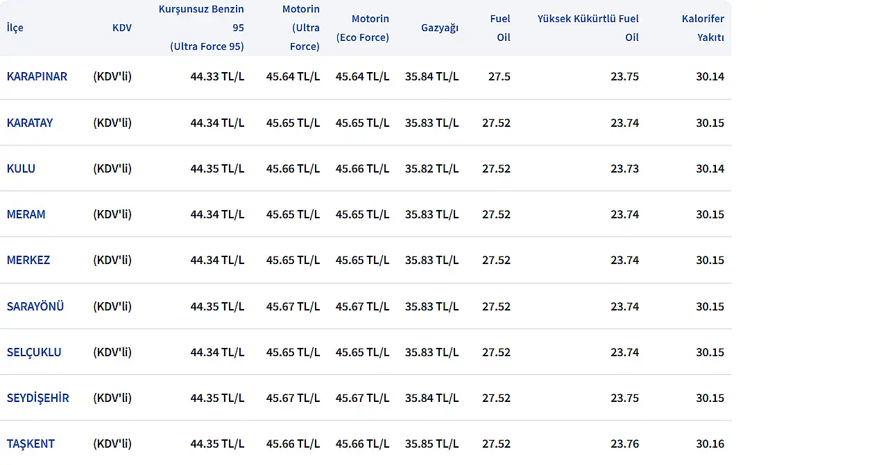 KONYA'DA GÜNCEL AKARYAKIT FİYATLARI