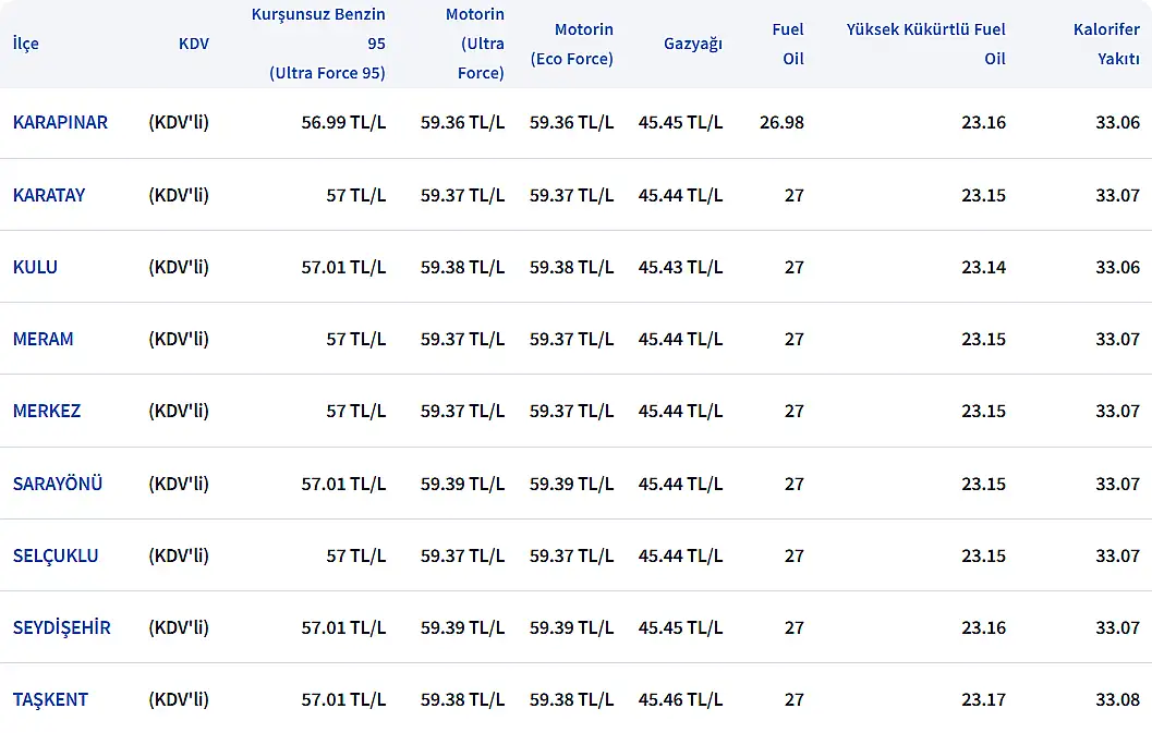 KONYA'DA GÜNCEL AKARYAKIT FİYATLARI