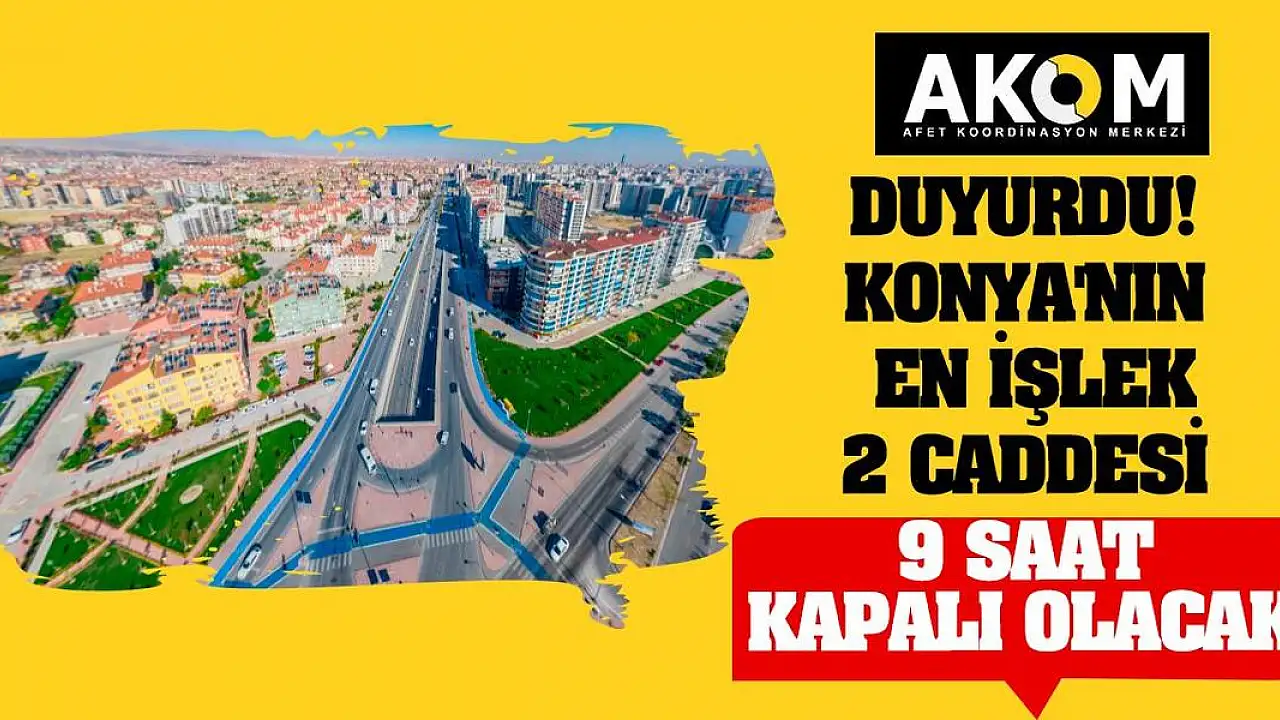 - AKOM Duyurdu! Konya'nın En İşlek 2 Caddesi 9 Saat Kapalı Olacak!