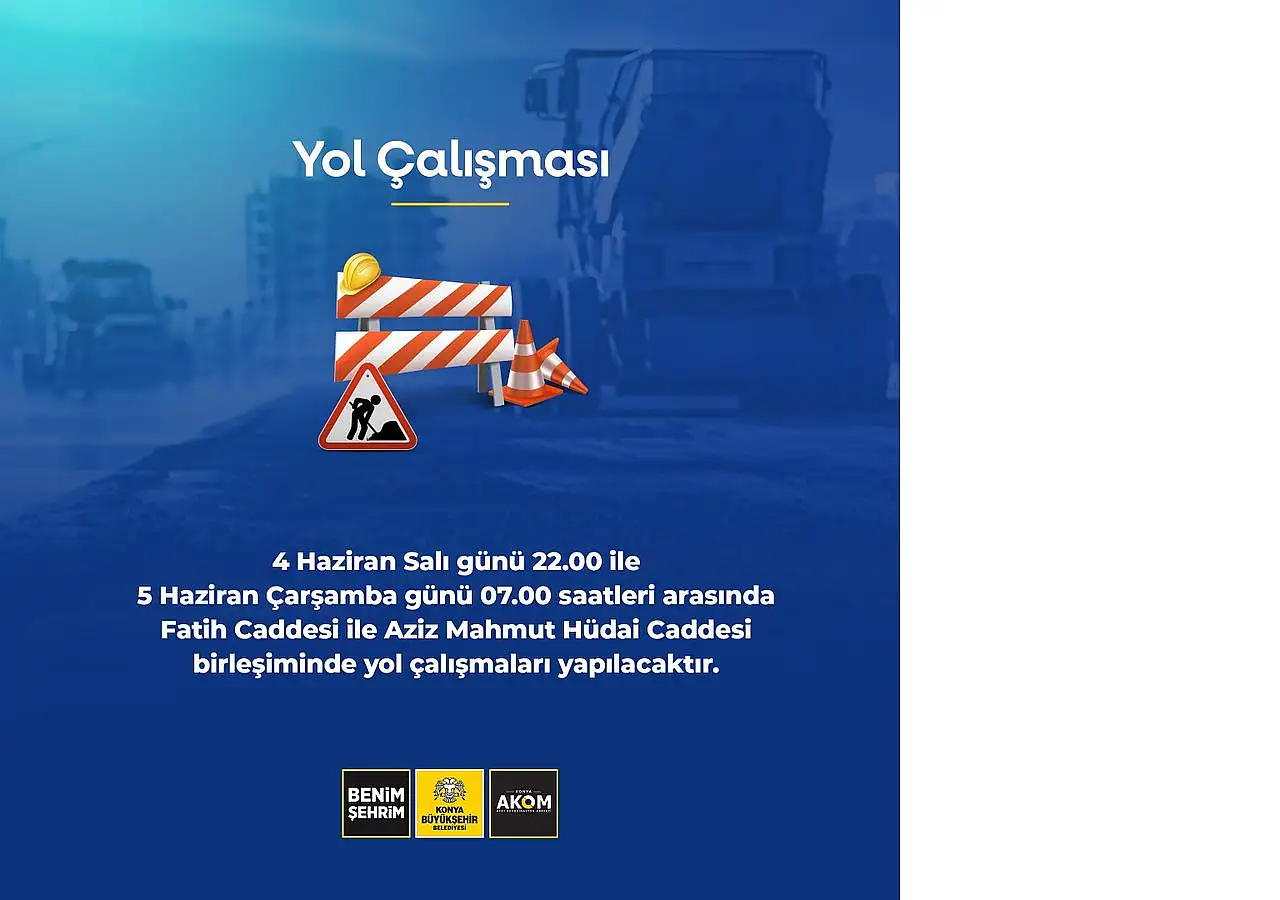 Konya Büyükşehir Belediyesi Afet Koordinasyon Merkezi sosyal medya hesabından yaptığı paylaşımla Konya'da en çok tercih edilen 2 caddesinin yol çalışmaları sebebi ile trafiğe kapalı olacağını duyurdu.Fatih Caddesi ile Aziz Mahmut Hüdai Caddesi birleşimi 4