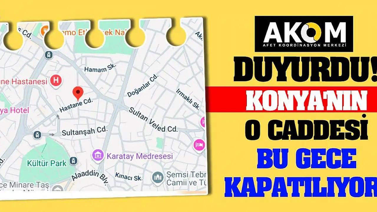 - AKOM duyurdu! Konya'nın o caddesi bu gece kapatılıyor!