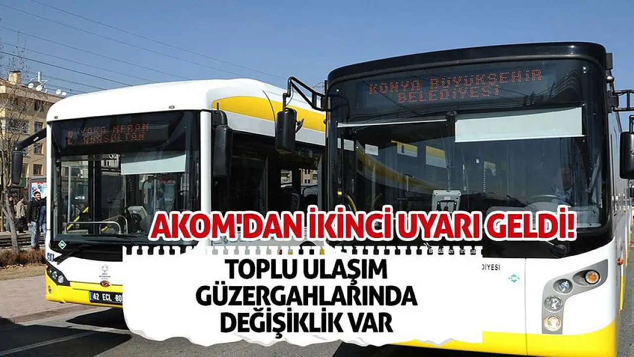 Konya AKOM sosyal medya hesabı üzerinden yapılan paylaşımla toplu ulaşım hatlarında bazı güzergahlarda değişikliğe gidildiğini bildirdi.