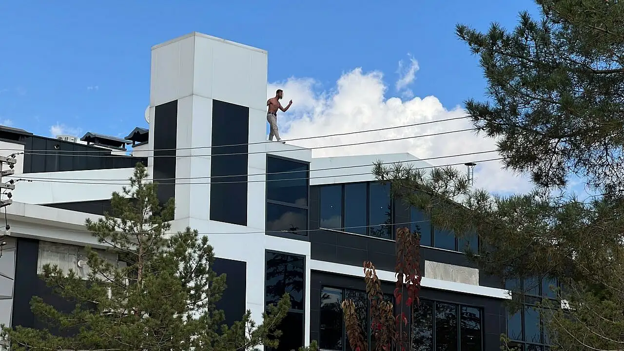 Alacağı İçin Çatıya Çıktı, Yarı Çıplak İkna Edilmeye Çalışıldı