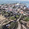 Çanakkale'nin Bayramiç ilçesinde çıkan orman yangınında, boşaltıldıktan sonra alevlere teslim olan Saçaklı köyünde dron ile görüntülendi.