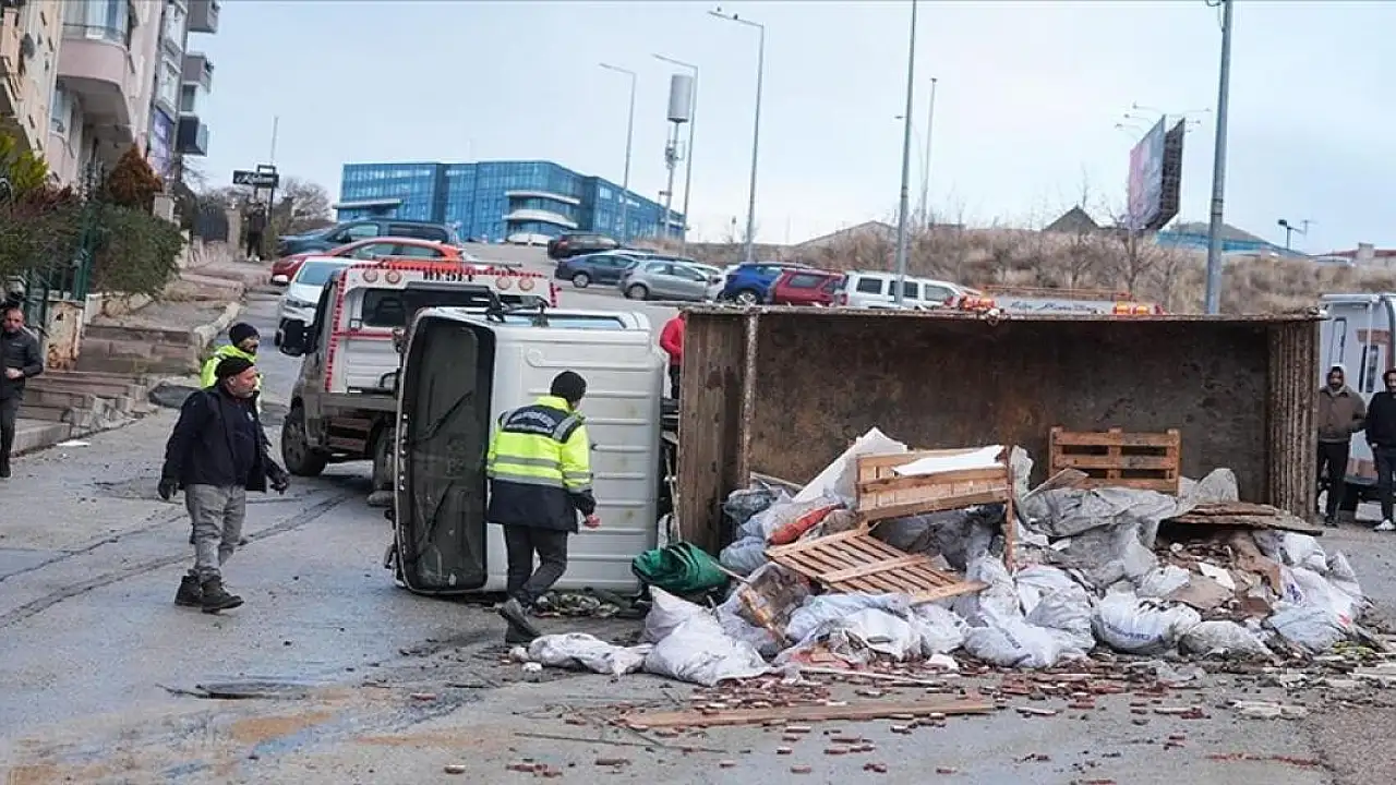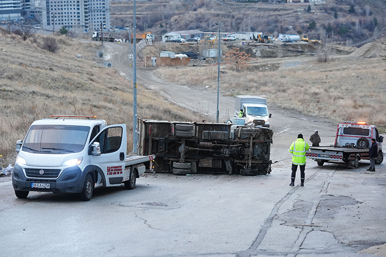 Ankara'da hafriyat kamyonu 11 araca çarparak devrildi