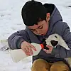 Annelerinin reddettiği kuzular biberon ile besleniyor