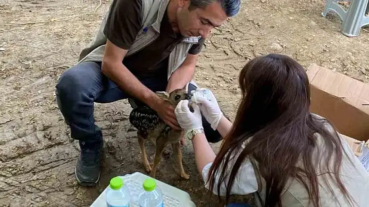 Annesinin terk ettiği yavru karacaya ekipler sahip çıktı