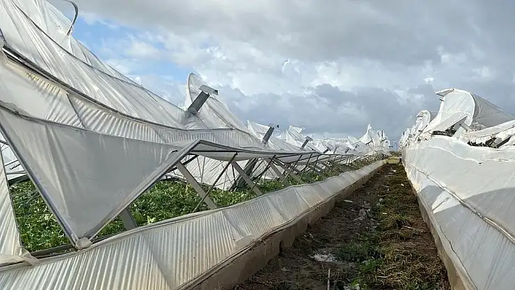 İki kez görülen hortum, çiftçilerin seralarının naylon kaplamalarını parçaladı, demir konstrüksiyonları eğdi ve tarım ürünlerin zarar görmesine neden oldu.