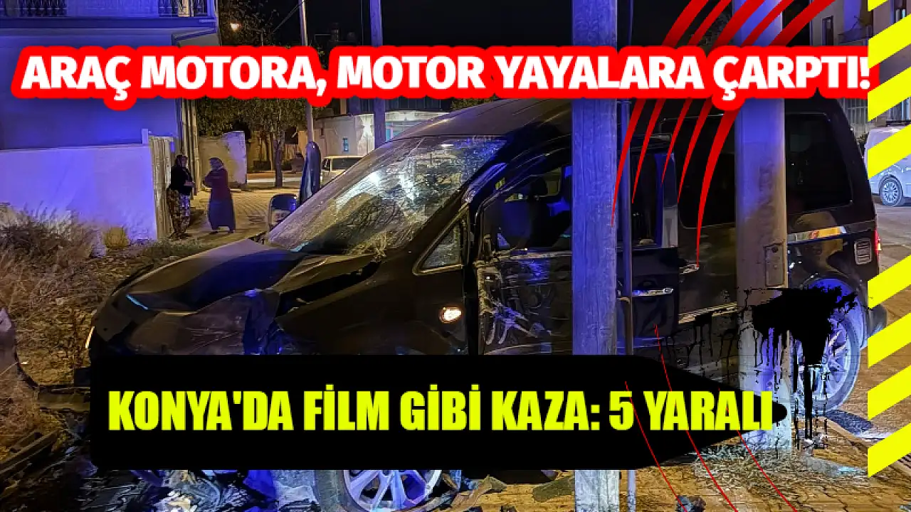 - Araç motora, motor yayalara çarptı! Konya'da Film gibi kaza: 5 yaralı