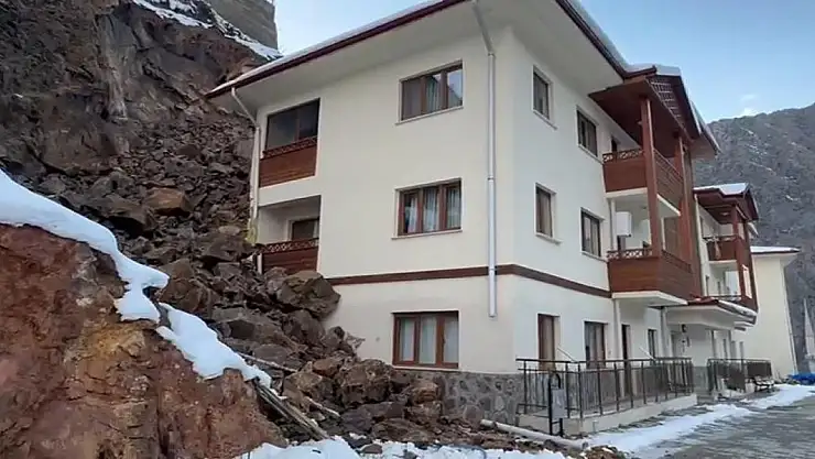 Artvin'in Yusufeli ilçesinde yamaçtan kopan taş ve kayalar 3 katlı binanın giriş katındaki evin içine girdi. Heyelanda yaralanan olmazken, pencere camları kırılan evde hasar oluştu