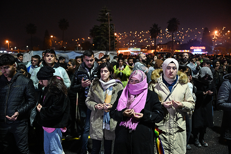 Hatay'ın İskenderun ilçesinde Kaptanpaşa Camisi'nde 6 Şubat 2023'teki depremlerde hayatını kaybedenler için sabah namazının ardından dua edildi.