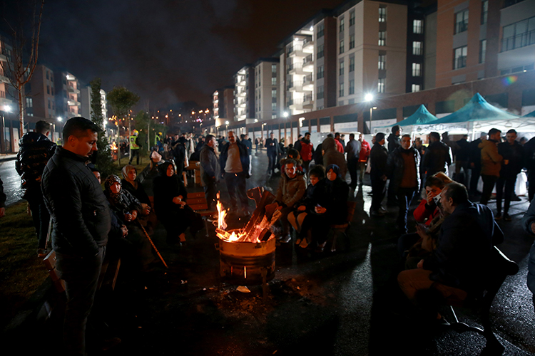 12 bloku yıkılan Ebrar Sitesi'nin yerine inşa edilen konutların önüne gelen aileler de burada ateş başında nöbet tuttu.