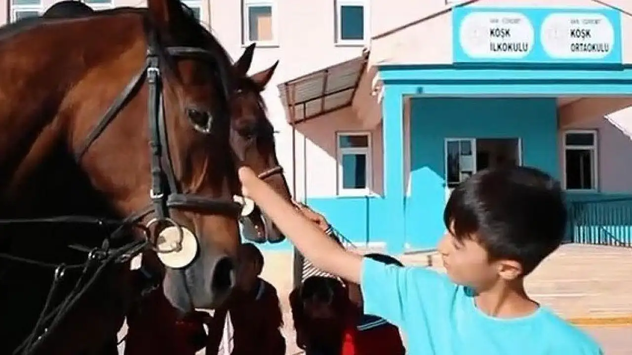 Atlı birlikleri gören öğrenciler, jandarma atlarını severek unutulmaz anlar yaşadı.
