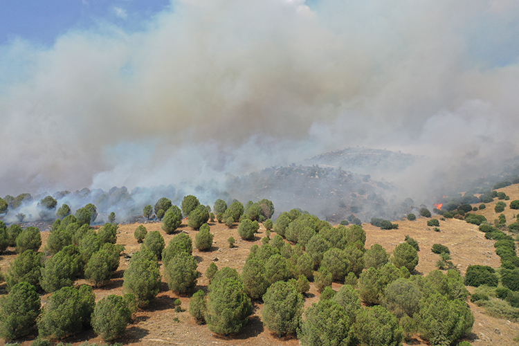 Kontrol altına alınan yangında 320 hektarlık alanın zarar gördüğü belirtildi.