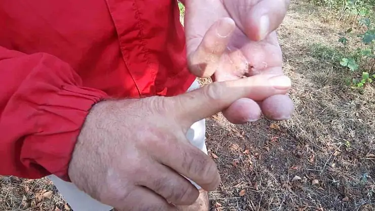 Bolu'nun Mudurnu ilçesinde fındık bahçesinde ayının saldırdığı kişi, bir parmağını kaybederken vücudunun çeşitli yerlerinden yaralandı. Yaşadığı dehşet anlarını anlatan Ertan Kan (47), "O an, "Çocuklarım ne olacak?', "Nasıl geçim sağlayacaklar?" diye düşündüm. Korkmaya da kaçmaya da fırsatım olmadı" dedi.