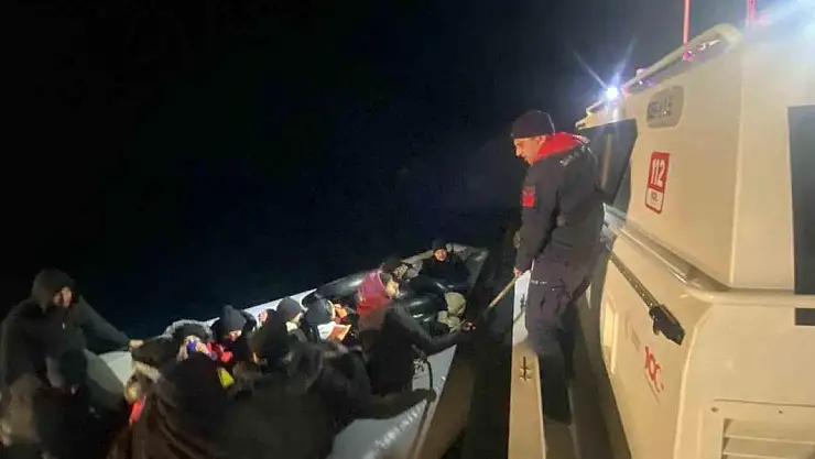 Ayvalık açıklarında devriye gezen Sahil Güvenlik botlarınca Midilli Adası'na doğru giden hareketli lastik bot tespit edildi. Ekiplerce durdurulan bottaki 9'u çocuk 25 düzensiz göçmen yakalandı.