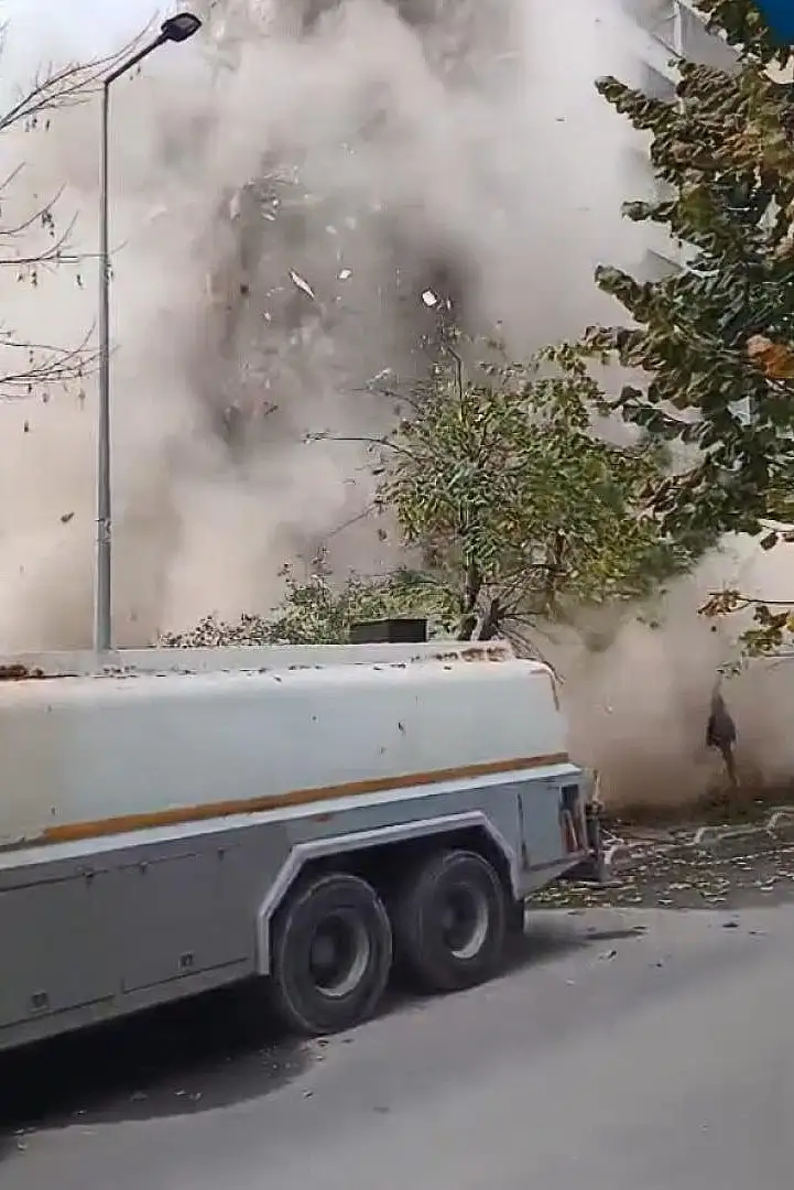Binaya çok yakın bir noktada bulunan tankerin üstünde oturarak yıkımı izleyen 1 kişi ise, binanın bir anda yıkılmasıyla toz bulutu içinde kaldı. Ölümün kıyısından dönen adam tankerin üstünden atlayarak kaçtı. Sokağı toz bulut kaplarken yaşananlar cep telefonu kamerasına yansıdı. Binanın yıkıldığı anlarda karşı sokaktaki bir dairede oturanlar da tehlike atlattı. Kontrolsüz yıkım sonrası yaşananlar cep telefonu kamerası tarafından kaydedildi.