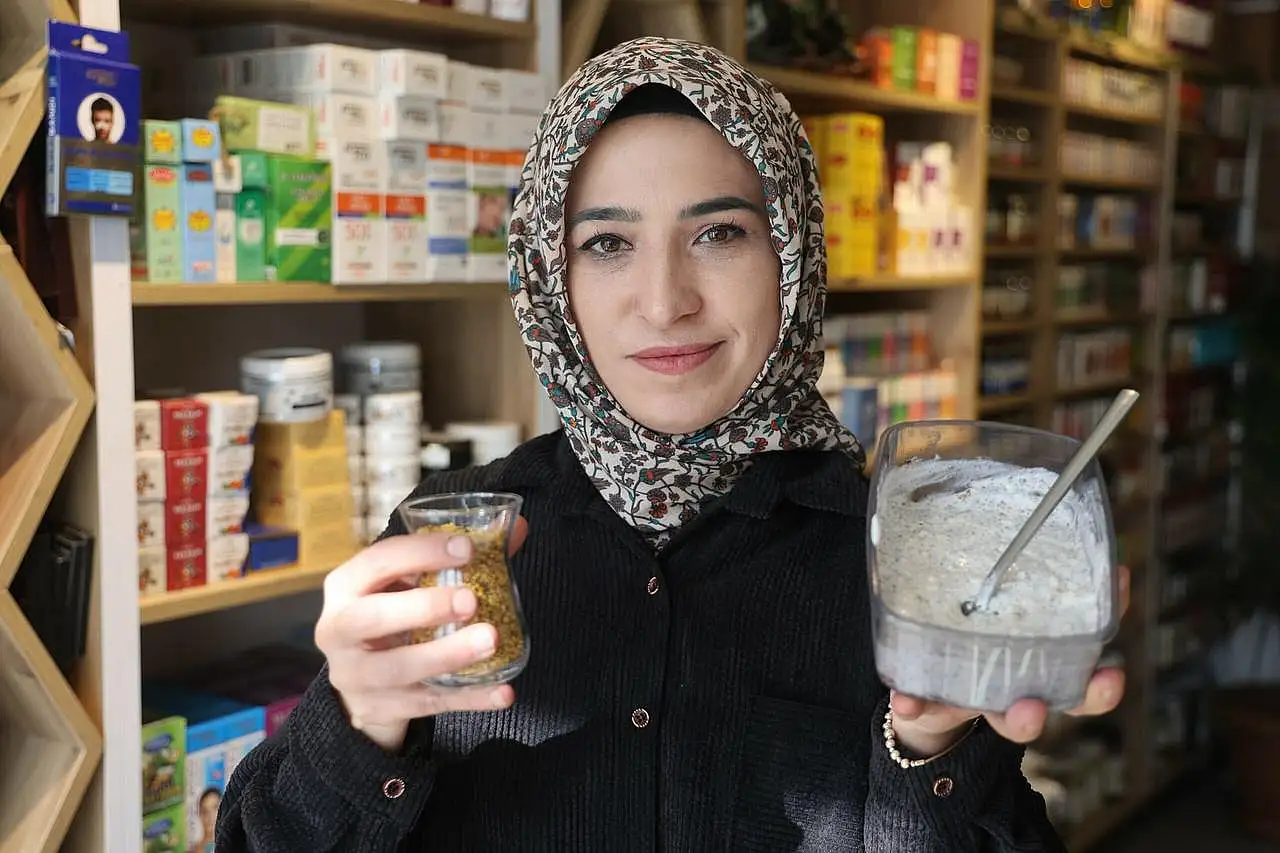 Karışım içerisine eklediğimiz polen olarak arı ürünleri kişinin bağışıklığını güçlendirmesi açısından çok önemlidir. Karışımımızda polenimizi de kullandık, polen hem bağışıklığı güçlendirici özelliği sayesinde hem de hastalıklara karşı kişinin metabolizmasına, bağışıklığını güçlendirici etkisi sayesinde çok fazla tercih ediyoruz. Son dönemlerde çok fazla satılan ürünlerden bir tanesi chia tohumu. Çocuğundan yaşlısına kadar herkesin gönül rahatlığıyla tüketebileceği bir ürün. İçerisinde kolajen barındırması sebebiyle kişiye hem kolajen takviyesi yapar, hem kemikleri güçlendirir. Bununla birlikte diyet yapanlarda aynı zamanda çok hareketli iş ortamında çalışanlarda faydası var" şeklinde konuştu.