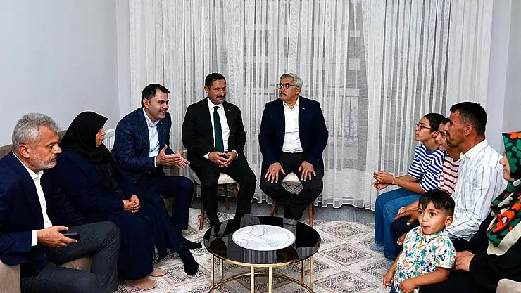 TOKİ'nin inşa ettiği eve misafir olan Kurum, aileye yeni yuvalarının hayırlı olmasını diledi ve Cumhurbaşkanı Recep Tayyip Erdoğan'ın selamlarını iletti.