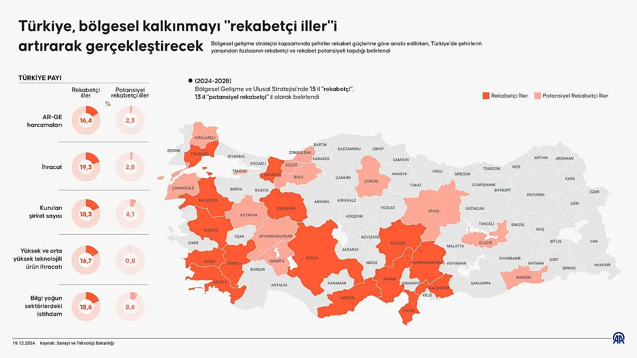 Potansiyel rekabetçi illerde ise Çorum, Sivas, Elazığ ve Mardin dışında Ankara'nın batısındaki yoğunlaşma dikkati çekti. Söz konusu iller Kırklareli, Çanakkale, Kütahya, Afyonkarahisar, Isparta, Düzce, Zonguldak, Bolu, Çorum, Sivas, Yalova, Elazığ ve Mardin olarak sıralandı.