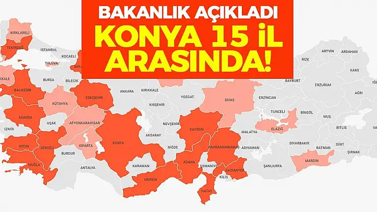 Bakanlık açıkladı! Konya 15 il arasında!