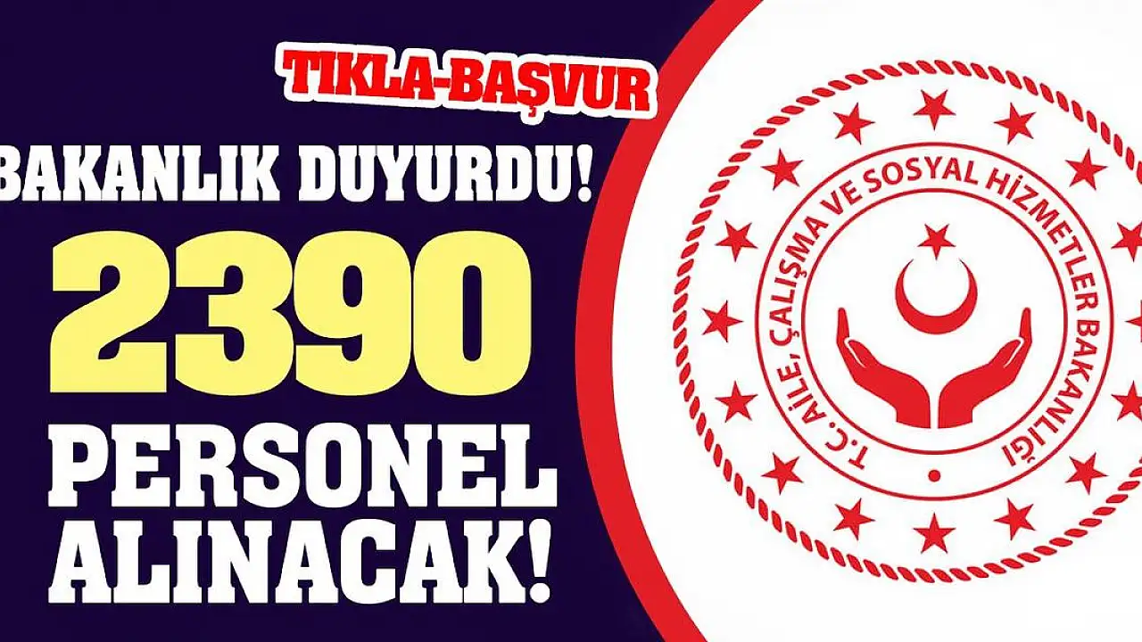 Aile ve Sosyal Hizmetler Bakanlığı, tarafından personel alımı ilanı yayımlandı. 2 bin 390 personelin alınacağı ilanda şartlar neler? Alımlar ne zaman yapılacak? Detaylar haberimizde…