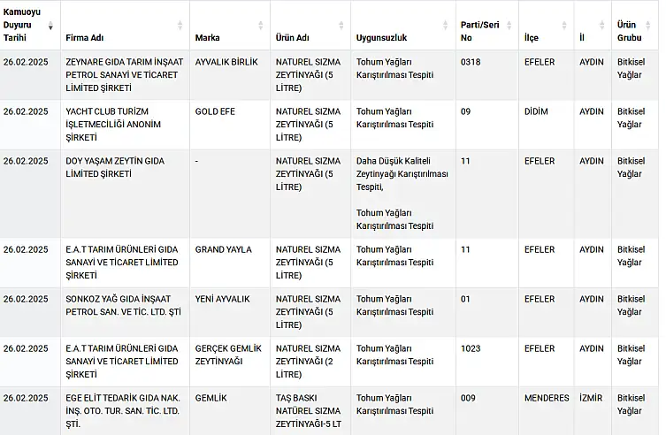 Yapılan denetimlerde, zeytinyağı üretiminde daha düşük kaliteli yağ kullanımı ve peynir yapımında bitkisel yağ kullanımı tespit edildi.