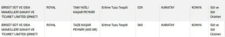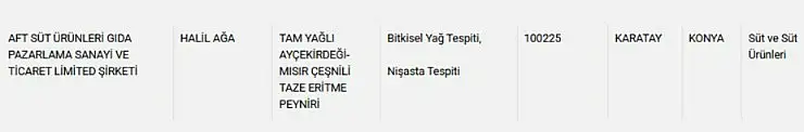 Bakanlığın resmi internet sitesinde yayımlanan bilgilere göre, Konya’da bazı şirketlerde üretilen “tam yağlı ay çekirdeği-mısır çeşnili taze eritme peyniri”nde mevzuata aykırı şekilde nişasta ve bitkisel yağ kullanıldığı belirlendi.