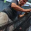 Yaklaşık 4 aylık dönemde bakım, tamirat ve boya işlemleri tamamlanan teknelerde ağların onarımı sürüyor.