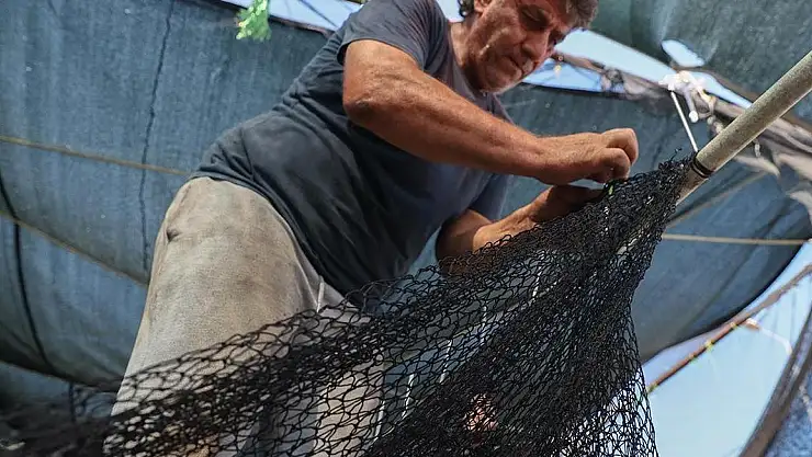 Sabahın erken saatlerinde başlayan ağ onarımı mesaisi gün batınca bitiyor. Günde yüzlerce metre ağ onaran balıkçılar, işlerini 1 Eylül öncesi bitirmeye çalışıyor.