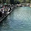 Yoğunluğun yaşandığı yerleşkedeki balıklara yem atan ziyaretçiler, bol bol fotoğraf çektirdi.