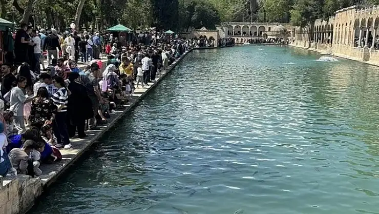 AA'nın haberine göre Bayram dolayısıyla Türkiye'nin farklı kentlerinden Şanlıurfa'ya gelen misafirler, doğal akvaryum olmasının yanı sıra inanç turizminde de önemli bir yere sahip olan Balıklıgöl'ü ziyaret etti.Yoğunluğun yaşandığı yerleşkedeki balıklara