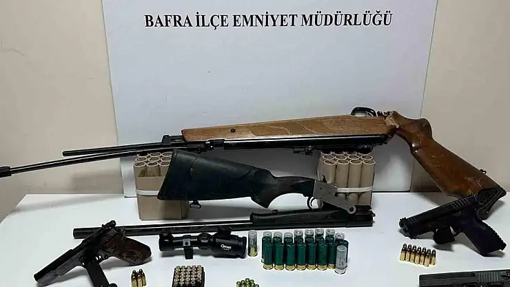 Olay, Bafra ilçesi Gazipaşa Mahallesi'nde meydana geldi. Edinilen bilgiye göre, Bafra İlçe Emniyet Müdürlüğü ekipleri, bir evin balkonundan ateş açıldığı ihbarı üzerine harekete geçti. Yapılan incelemelerde, balkondan ateş eden kişinin S.Y. (44) olduğu tespit edildi. S.Y.'nin üzerinde ve ikametinde yapılan aramalarda, 1 adet ruhsatsız tabanca, 7 adet tabanca fişeği, 1 adet kurusıkı tabanca, 46 adet kurusıkı fişeği, 1 adet ruhsatsız tüfek, 25 adet tüfek fişeği, 1 adet havalı tüfek ve 2 kutu havai fişek ele geçirildi. Olayla ilgili S.Y. gözaltına alındı.
