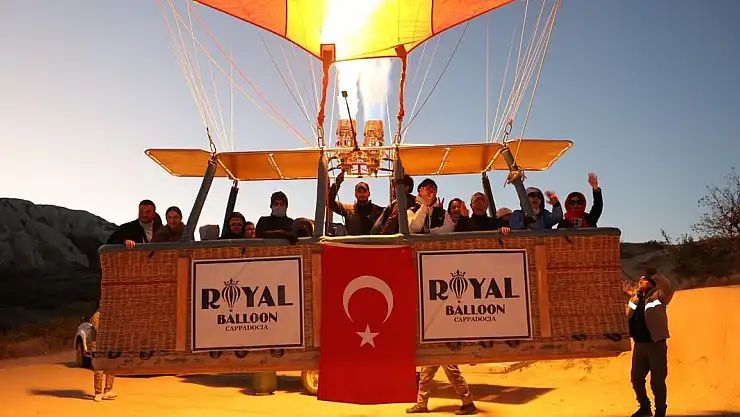 Nevşehir'in Göreme beldesinde, gün doğumundan önce uçuş için hazırlanan sıcak hava balonlarının sepetlerine, Türk Bayrakları ve Atatürk posterleri asıldı. Türk Bayrakları ile peş peşe gökyüzüne yükselen balonlar, bölgedeki peribacaları arasında fotoğraf çektiren yerli ve yabancı turistler için görsel şölen oluşturdu. Yaklaşık 1,5 saat Kapadokya semalarında dolaşan Atatürk posterli ve Türk Bayraklı sıcak hava balonları, güzel görüntüler oluşturdu.