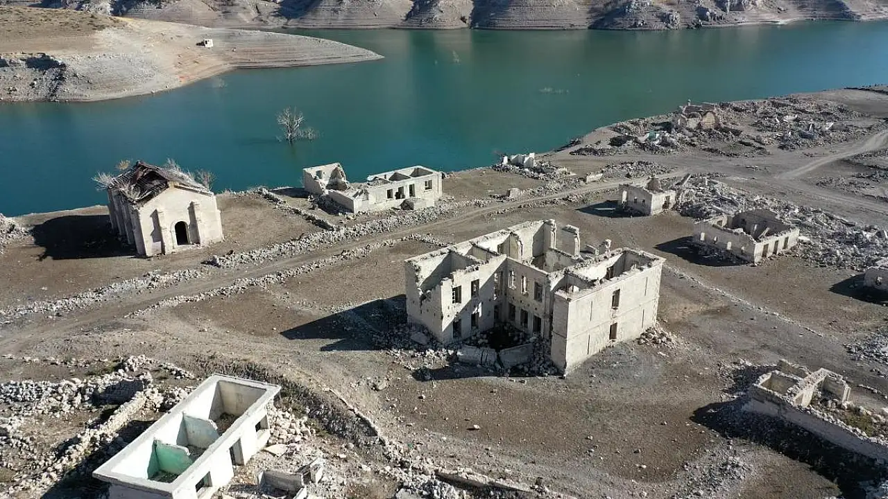 Baraj kapaklarının kısmen açılmasıyla su seviyesi düşünce köydeki evler, cami, kilise ve bazı tarihi binalar gün yüzüne çıktı.