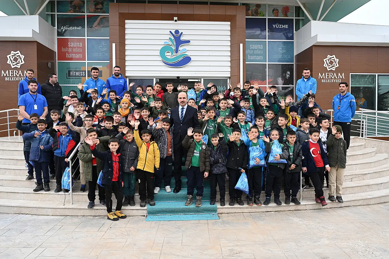Konya Büyükşehir Belediye Başkanı Uğur İbrahim Altay, 'Yüzme Bilmeyen Kalmasın' projesi kapsamında yüzme eğitimi alan 3. sınıf öğrencileriyle bir araya geldi.